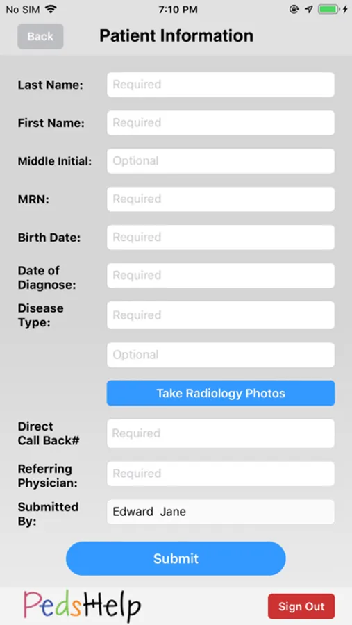 PedsHelp is an application designed to help emergency room physicians and pediatric referral facilities contact their affiliated Pediatric Hospital Experts to assess a pediatric patient and collaboratively determine the course of treatment. In U.S there are many small/referring hospitals which may need additional expertise in determining the best triage for a pediatric patient. PedsHelp is designed to help with timely triage and treatment of such patients.