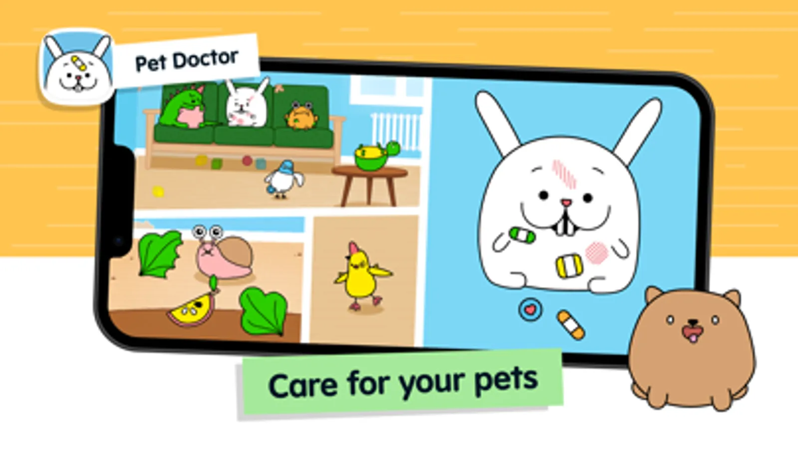 Take care of 15 pets of all shapes and sizes! From a turtle flipped over on its shell to a dinosaur with a stomach bug, there are lots of furry, finned and feathered friends in the waiting room. Use different tools and supplies to treat each pet’s symptoms, and don’t forget to give them a treat when you’re done. Wake them up from their nap to start playing again!