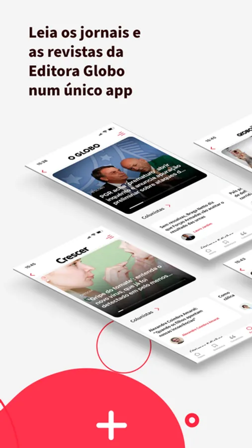 Unlimited access to all exclusive content from O Globo, Valor Econômico and Extra newspapers, in addition to Vogue, Autoesporte, GQ, Época Negócios, PEGN, Casa e Jardim, Marie Claire, Glamour, Casa Vogue, Galileu, Crescer and Globo Rural magazines. Ample content with analysis by the best experts and contributors in the country and subscribers have access to materials without advertising.