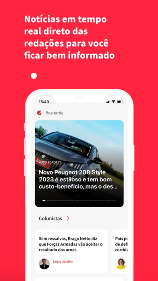 Easier to use interface. Best of all, you can customize the home page to display the news and columnists that interest you most. There are more than 100 columnists and 20 topics for you to stay on top of everything that happens in Brazil.