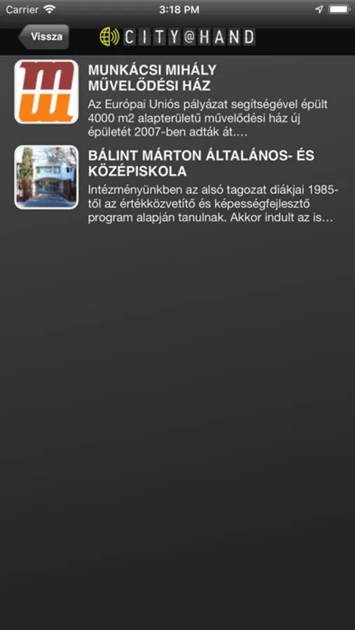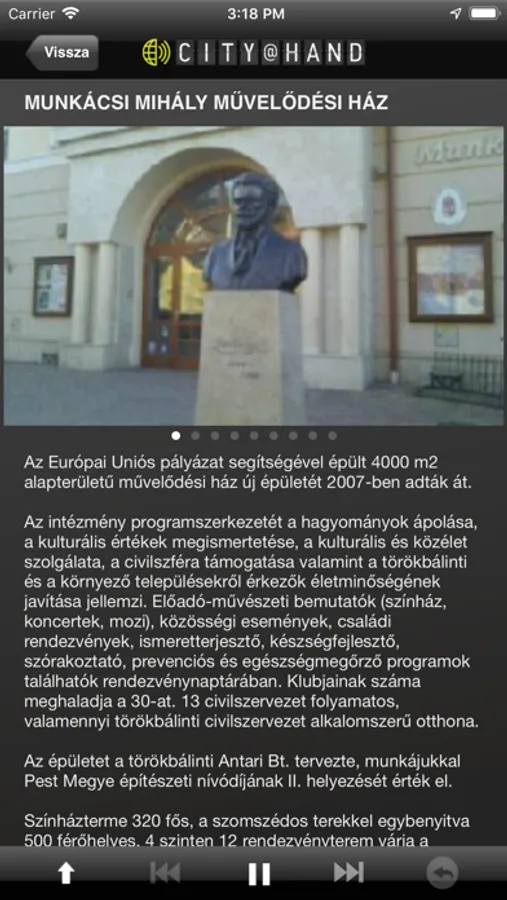 Törökbálint CITY@HAND offers public city information, sightseeing content, tourist information, map and software for the Hungarian city Törökbálint. It is currently available only in Hungarian.