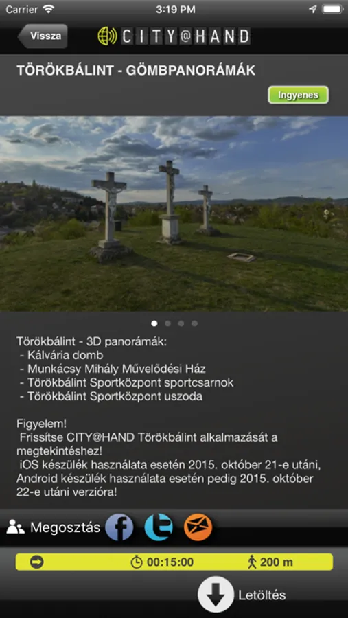 A Törökbálint CITY@HAND előre letölthető, offline alkalmazás hasznos információkat nyújt a helyiek és a turisták számára. A folyamatosan frissülő közérdekű információk mellett turisztikai tartalmak is elérhetők. A helyhez kötődő információk megjelenítését letölthető település térkép is támogatja.