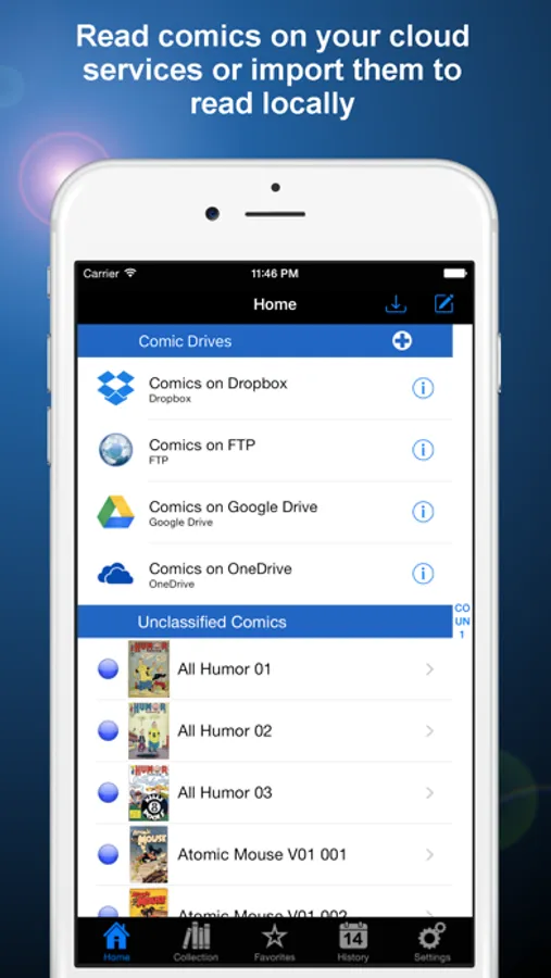 √ Create shortcuts to your cloud storages (called "Comic Drives") and access comics on them directly through the app.