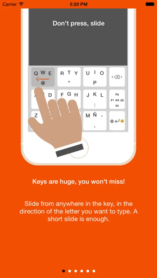 Slide each key left, up, right or down in the direction of the character you want to type.