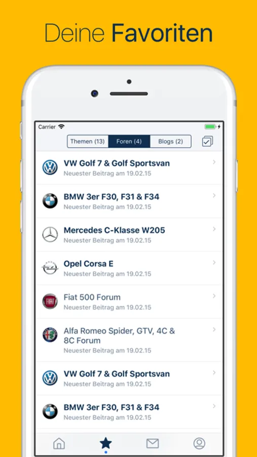 - Sie zeigt Dir Deine Favoriten an. Das sind Blogs, Themen oder Auto-Foren, die Du abonniert hast. Du siehst sofort, ob es etwas Neues gibt.