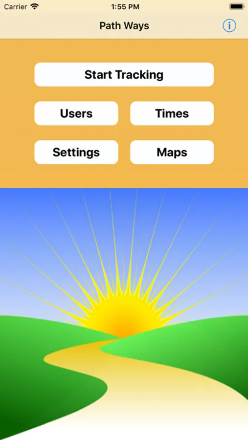 PathWays is a navigation and geotracking app designed to capture, log, and display locations and paths of up to 5 users simultaneously on one map in real time and historical time. The home menu allows tracking of your location to be started and stopped and provides buttons to segue to Users, Times, Settings, Maps, History, and help information. Please note: Continued use of GPS running in the background can dramatically decrease battery life. There is an option under Settings to maximize battery life by decreasing the precision of GPS readings.
