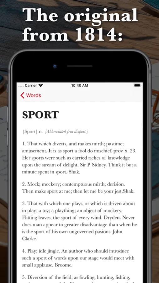 The magic is in the definitions for commonplace words. Just take a look at the screenshots! This is good stuff. It will delight and amuse. It may even kindle your imagination.