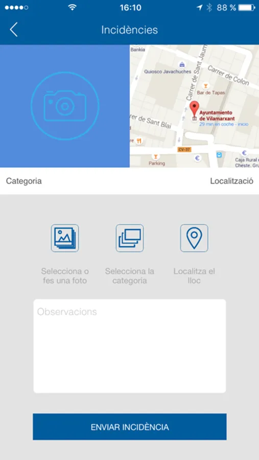 VILAMARXANT INFO es una aplicación del ayuntamiento de Vilamarxant, de gestión de incidencias en el equipamiento urbano y de participación ciudadana. Permite a los ciudadanos de Vilamarxant notificar directamente al ayuntamiento en tiempo real, diversos tipos de incidencias, averías o desperfectos que se puedan encontrar en la localidad.