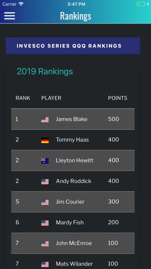 Experience Champions Tennis like never before! The Official Champions Series Tennis App provides fans an exclusive, up-close and personal experience with the likes of Andre Agassi, Pete Sampras, John McEnroe, Andy Roddick and Jim Courier far beyond the court.