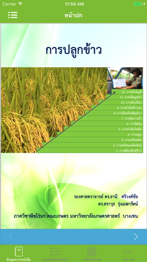 การนำเนื้อหาในหนังสือการปลูกข้าวมาจัดทำเป็น application ในระบบ iOS นี้ได้รับการสนับสนุนจาก