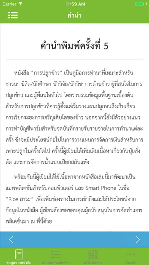 - หนังสือข้อมูลเกี่ยวกับ การปลูกข้าว