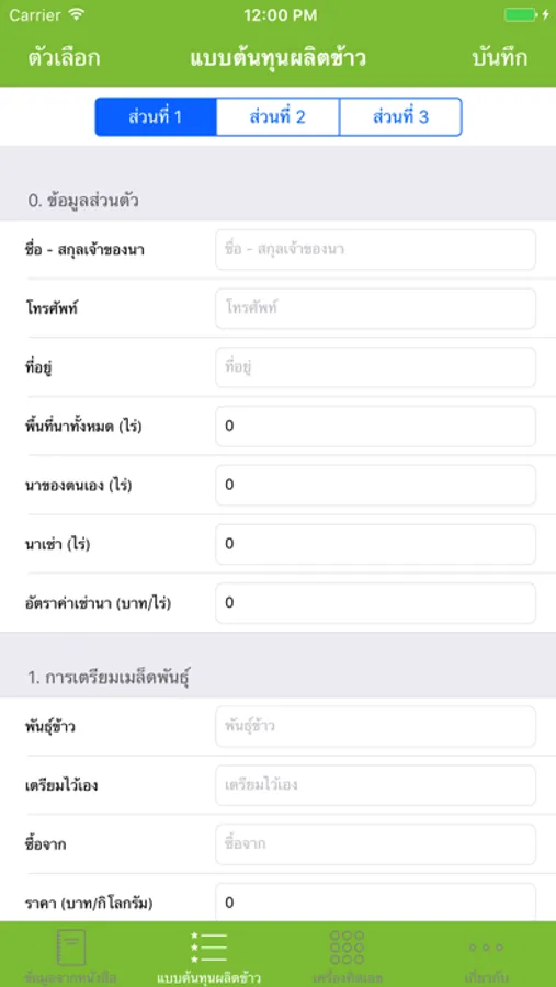 - แบบต้นทุนผลิตข้าว และเครื่องคิดเลขสำหรับการคำนวณ