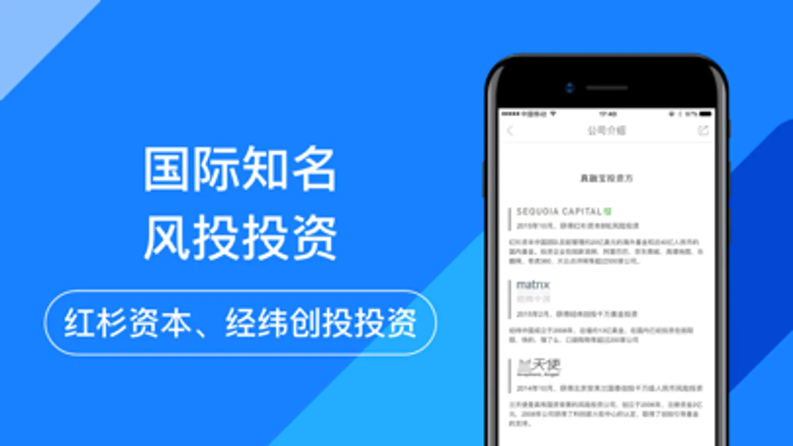 已获得知名投资机构红杉资本近亿元的投资,红杉资本还投资过阿里巴巴、360、京东、新浪网。