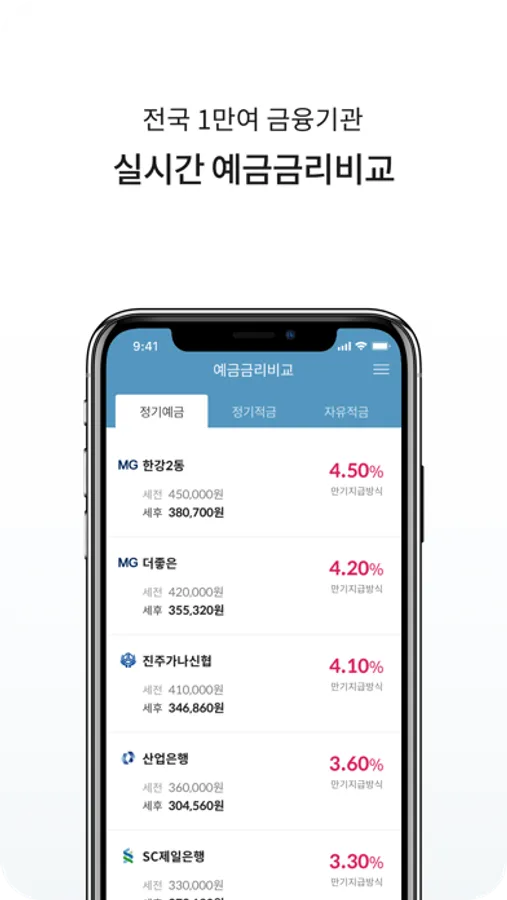 • 국내 모든 은행, 저축은행은 물론, 3,000여곳 이상의 전국 농/축협, 새마을금고, 신협 예금금리 비교