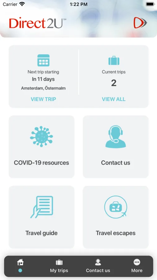 Experience powerful, proactive support directly at your fingertips with Direct Travel’s mobile travel app! Direct2U℠, powered by Mantic Point, provides resources to help Direct Travel customers navigate each business trip with ease. Services include: calendar sync, flight status updates and mobile check-in, weather forecasts, traffic details, itinerary reminders, destination information for domestic and international travel and quick access to support from a Direct Travel agent.