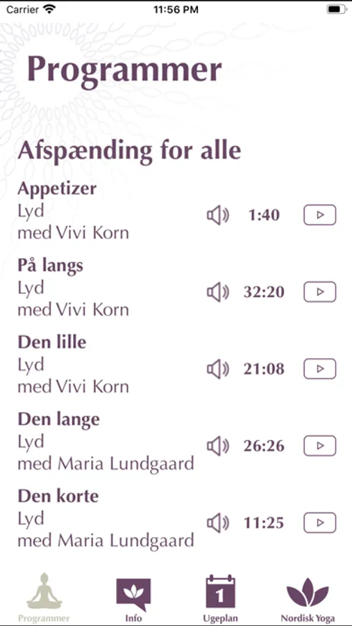 * En ugeplan, hvor du kan se tider på alle Nordisk Yogas Yoga og afspændingshold - og evt. tilmelde dig dem, som passer dig bedst.
