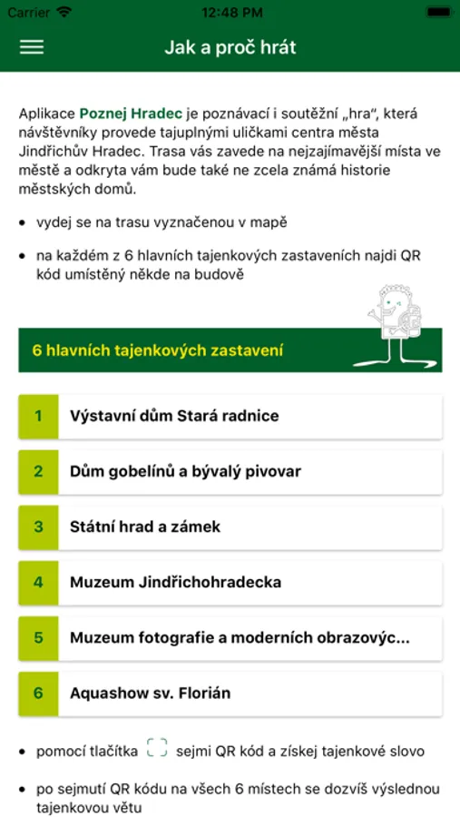 Aplikace Poznej Hradec je poznávací i soutěžní „hra“, která návštěvníky provede tajuplnými uličkami centra města Jindřichův Hradec. Trasa vás zavede na nejzajímavější místa ve městě a odkryta vám bude také ne zcela známá historie městských domů. Snímáním QR kódů budete postupně odhalovat slova tajenkové věty. Po vyřešení tajenky se můžete zúčastnit slosování o hodnotné ceny v podobě tabletů.
