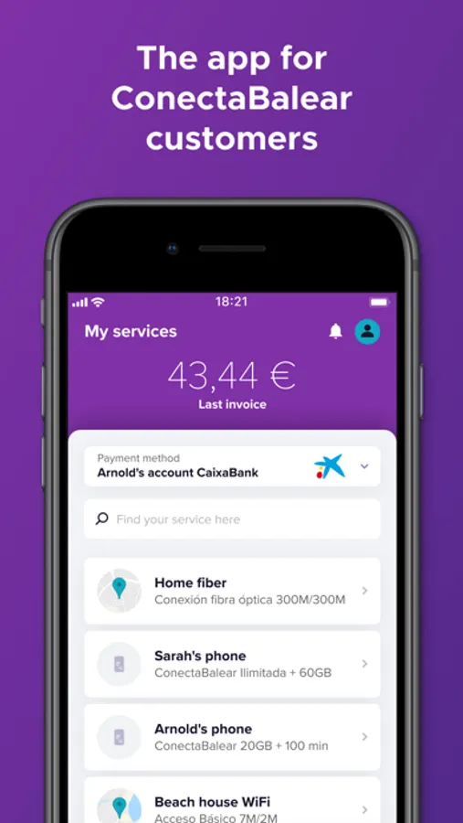 The Official ConectaBalear App allows you to check your invoices, the telephone usage or the call details. You will be able to configure your Internet connection and much more.