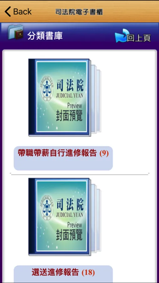 本系統提供使用者下載閱讀司法院電子化之書籍,其內容包括專題研究報告、出國考察報告、中譯外國法學、外譯本國法學、參考手冊等電子書。