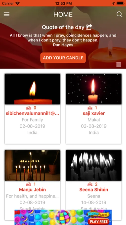 Offering for others, praying for others. Get Blessing, get closer to God, Pray for other using Lighting a candle for them. They say when you pray for other you get more blessed, here is your chance. Here you can give your prayers and pray for your loved ones and others. Your Candle will be there on Map for 48 hours once you lit it. Also you can share the Pray Candle via the Social Media. God Bless you all.