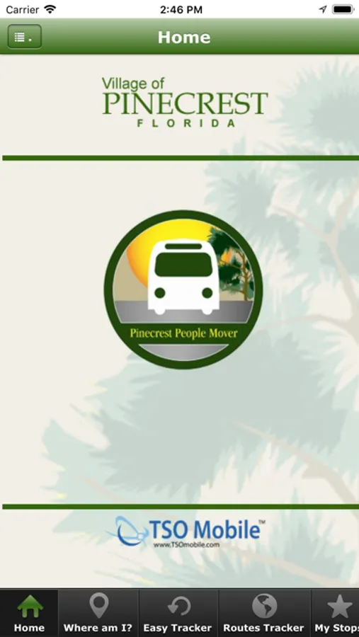 Using Pinecrest new Mobile Application from "TSO MOBILE" you will be able to take advantage of an entirely new, Redesigned Mobile Online Tracker that will take you by the hand and guide you to your next Destination on-board Pinecrest New "Old Fashioned" City Trolley’s. This application takes the Original Trolley Tracker to the Next Level.