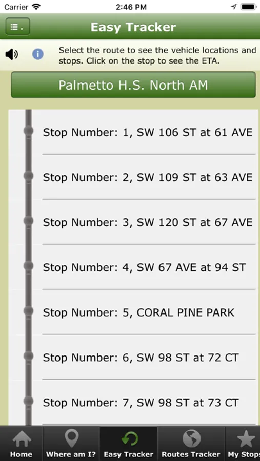 Note: If a Stop or Route is not near your location the system will guide you by giving you Walking Directions on how to reach your nearest Stop or Route. (you will see the Line to Follow on the Maps)