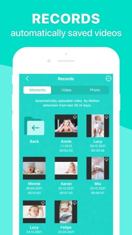See your baby video and audio activity history during the session.