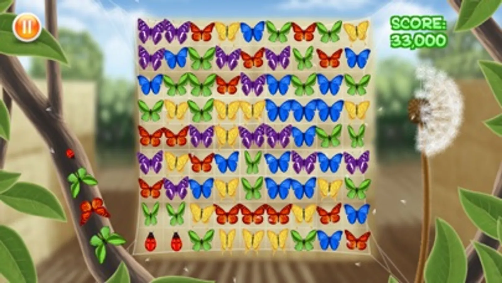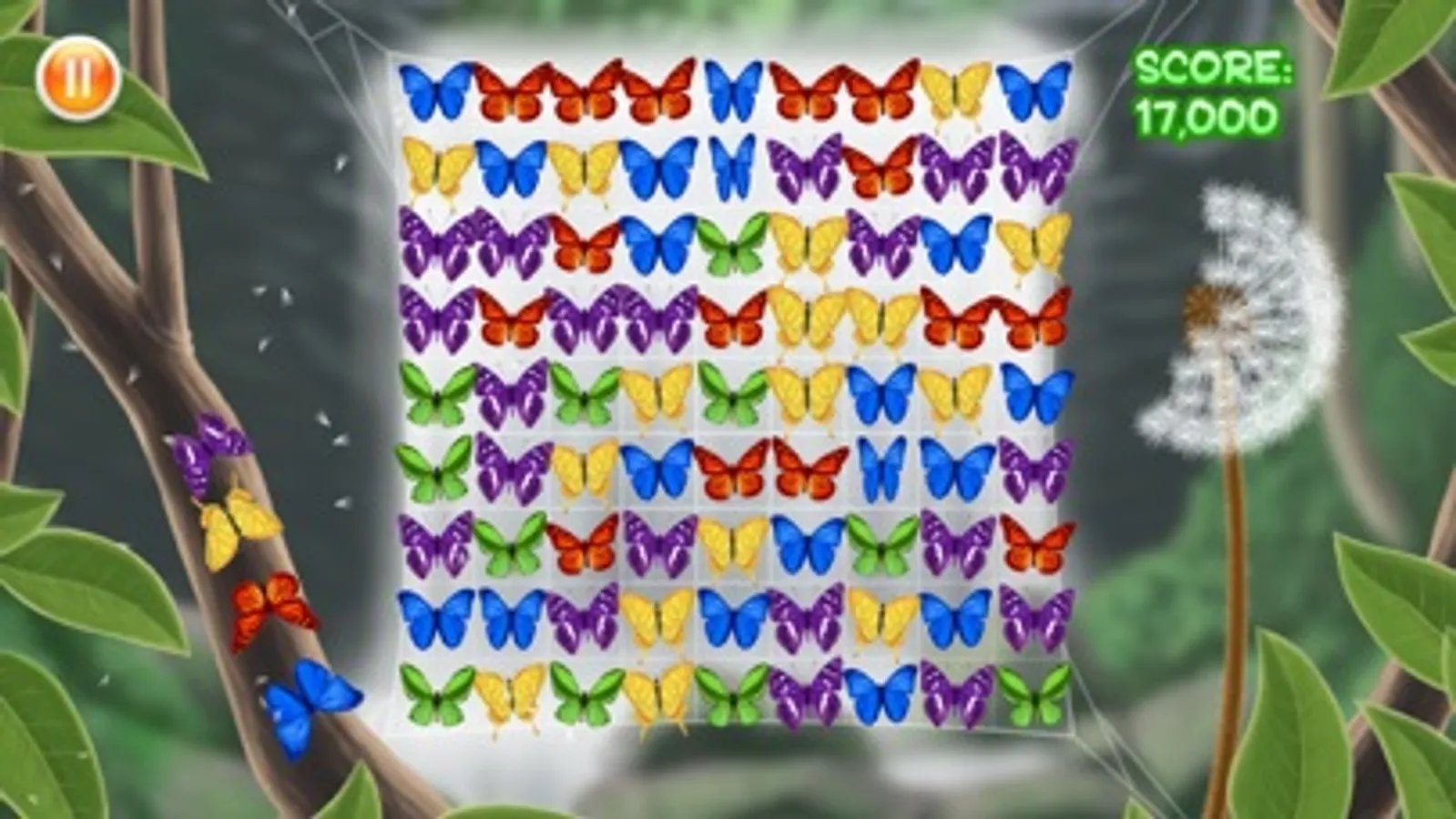 Fluttabyes is a bright, cheerful, and fun take on a "Match 3" game. Easy to pick up and play, and thoroughly addictive! Your aim is to help the butterflies fly away by matching 4 or more of the same colour. Earn score multipliers by creating matches very quickly. If you match more than 6 butterflies you will earn a ladybird. If you match more than 9 butterflies, you will earn the magical rainbow butterfly!
