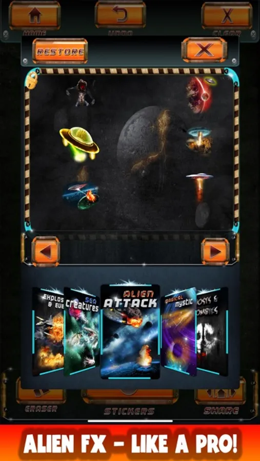 Recreate a scene from a blockbuster movie easily with this app! With Alien attacks, explosions, even Ghosts & Zombies, you can really unleash your creativity!