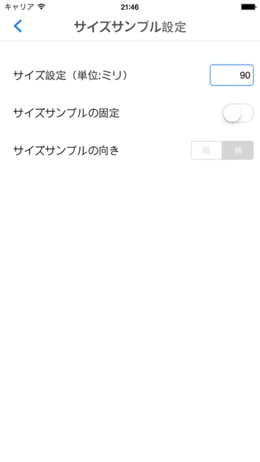 ②右下の設定画面の、サイズサンプル設定でサイズサンプルの大きさをミリ単位で入力します。