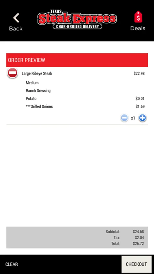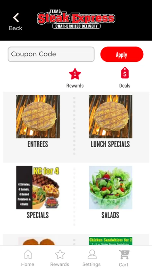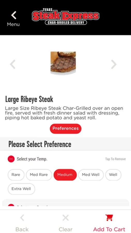 At Texas Steak Express, our menu includes a wide variety of delicious choices from rib-eye steaks, steak tips, chicken breast fillets, cheeseburgers, sandwiches, salads, salmon to shrimp cooked to your specifications. All of our entrees come with a crisp salad, piping hot baked potato with all the trimmings, and a baked roll.