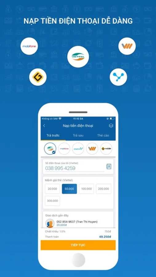 NẠP TIỀN ĐIỆN THOẠI DỄ DÀNG, NHANH CHÓNG