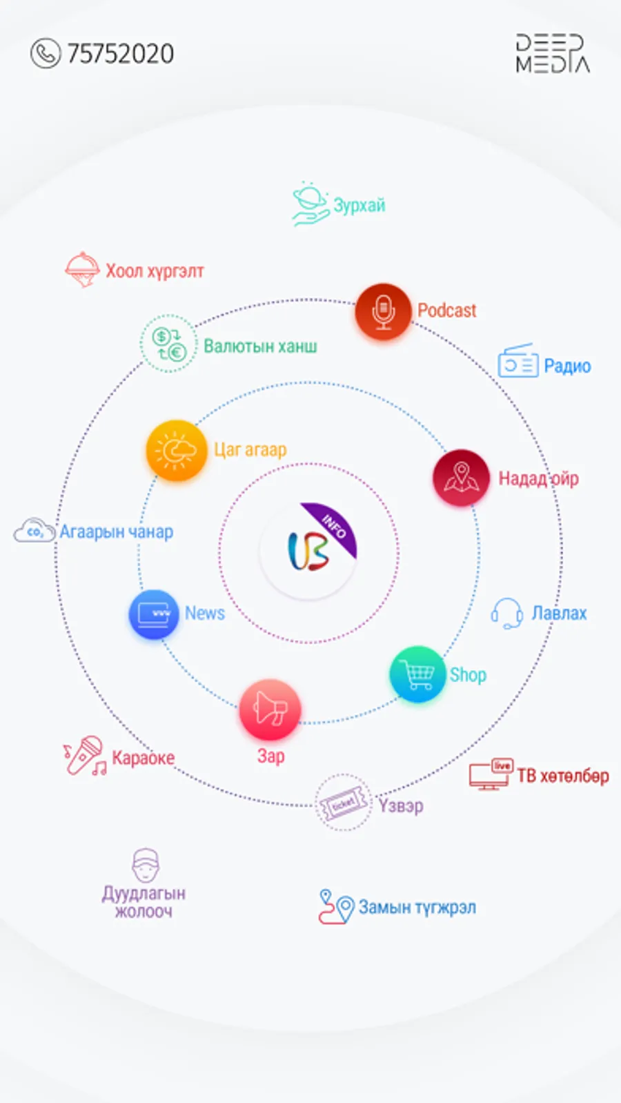 UB Info апп нь таныг өдөр тутмын шаардлагатай мэдээллээр хангах бөгөөд бүх байгууллагын дэлгэрэнгүй мэдээлэл, 60 гаруй хэвлэл мэдээллийн тэргүүлэгч сайт, сонин сэтгүүлийг нэг дор багтаасан цорын ганц апп юм. Монголд хамгийн их хэрэглэгддэг апп болсноор 1,300,000 гаруй хэрэглэгч өдөр тутам мэдээллээ авдаг болоод байна.