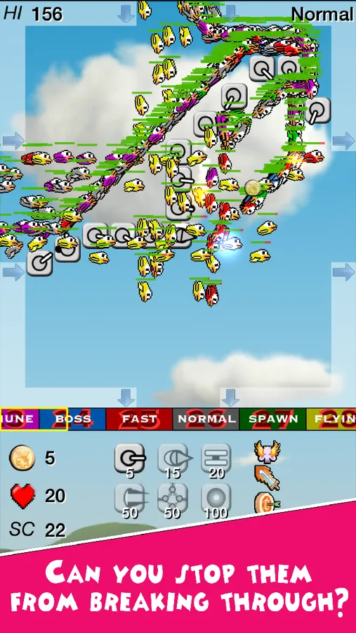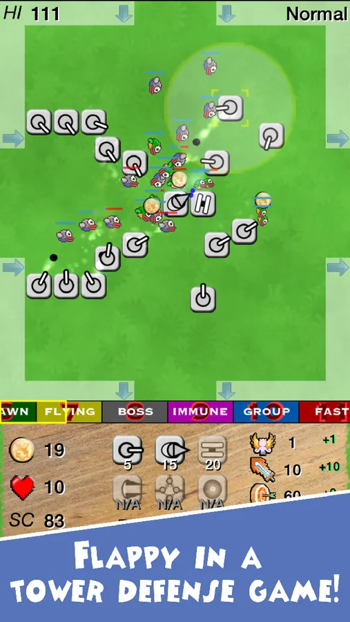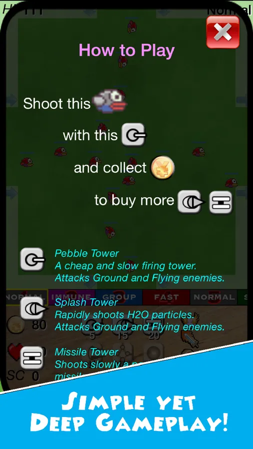 • Over 5 levels of tower abilities! Rain destruction on the fearsome Flappy Birds.