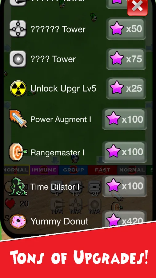 • 6 specialized tower upgrades to customize your strategy! Quaking weapons, Splash Cannons, Pebble Towers, just to name a few.