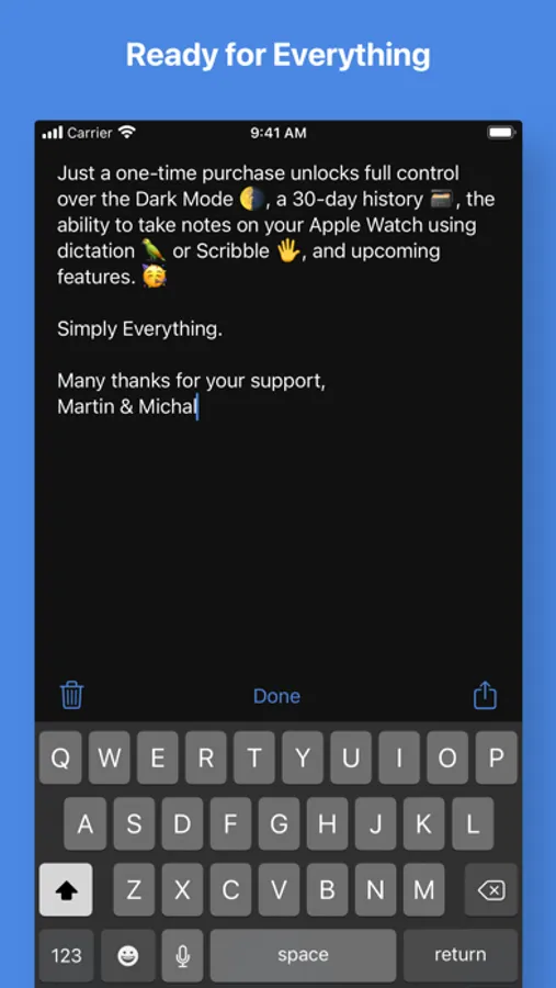 Quick Notes is a simple app for writing notes that you want to access anywhere, anytime in your Notifications Center. Quick Notes is about efficiency. You are not filled with clutter you don't need. Just open and take notes.