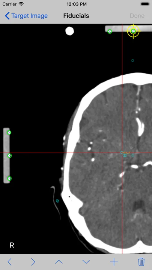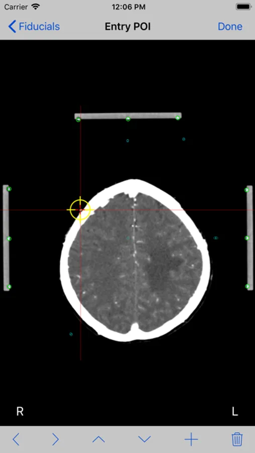 Mark each fiducial on the image and tap the Done button. Mark the entry point and tap the Done button.
