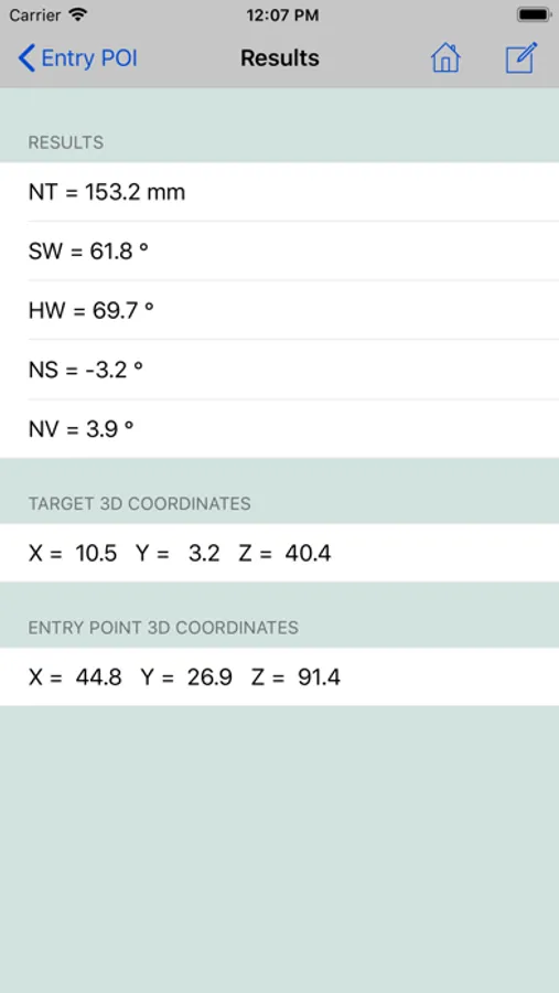 10.At this point the stereotactic parameters NT, SW, HW, NS and NV will be computed and displayed.