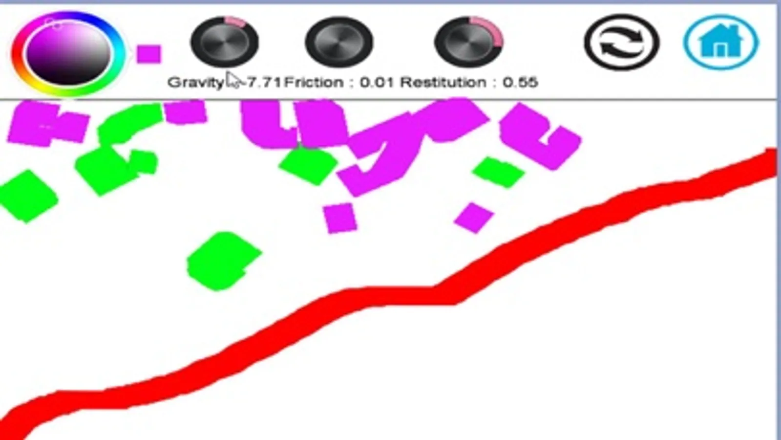 Unlike those common coloring book games this coloring book game presents physics engine with gravity, restituion, friction capabilities.