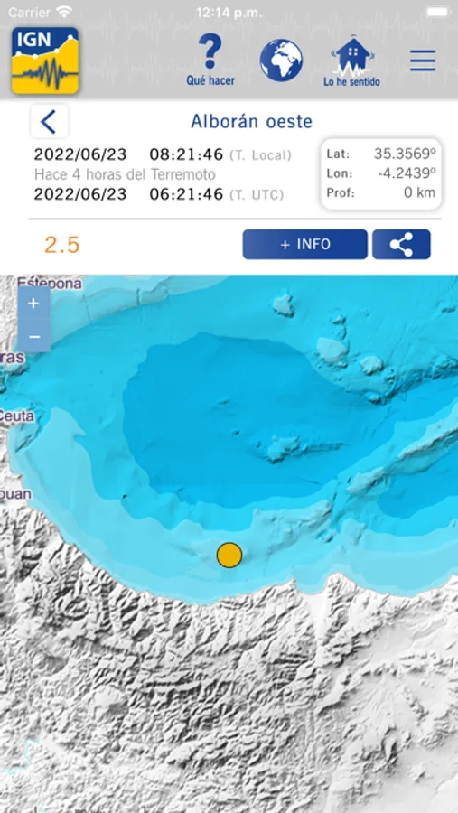 4.- En caso de haber sentido un terremoto, posibilidad de envío de un formulario macrosísmico a través de sencillos iconos animados.