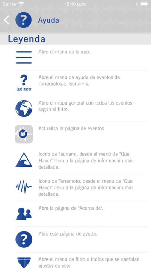 3.- En el caso de que haya riesgo de tsunami se indicará a través de un icono en pantalla (en Menú principal, Ayuda se encuentra toda la información).