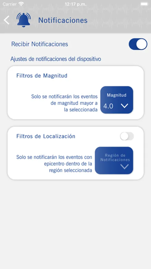 6.- Posibilidad de activar el servicio de envío de notificaciones en caso de evento sísmico.