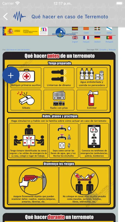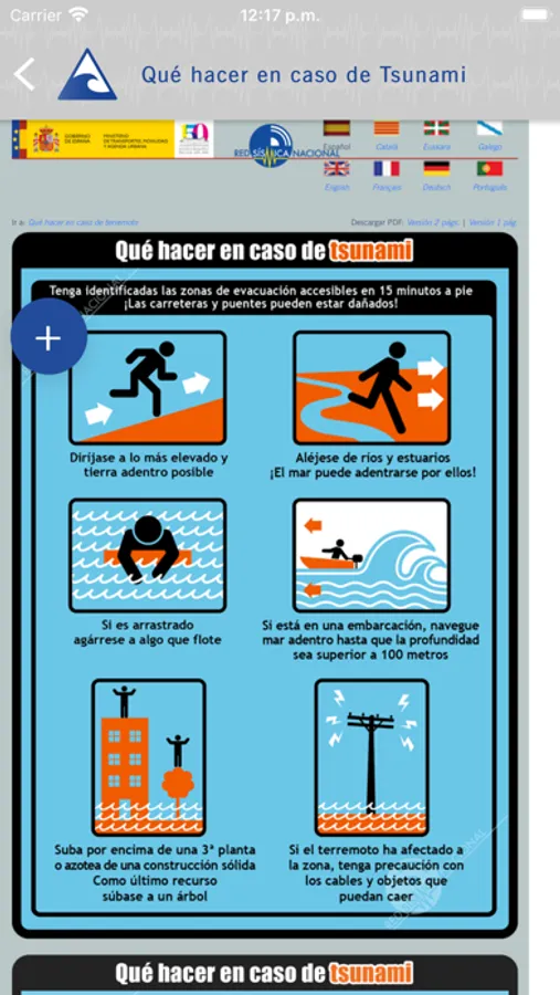 11.- Información sobre "qué hacer en caso de terremoto" y "qué hacer en caso de tsunami"