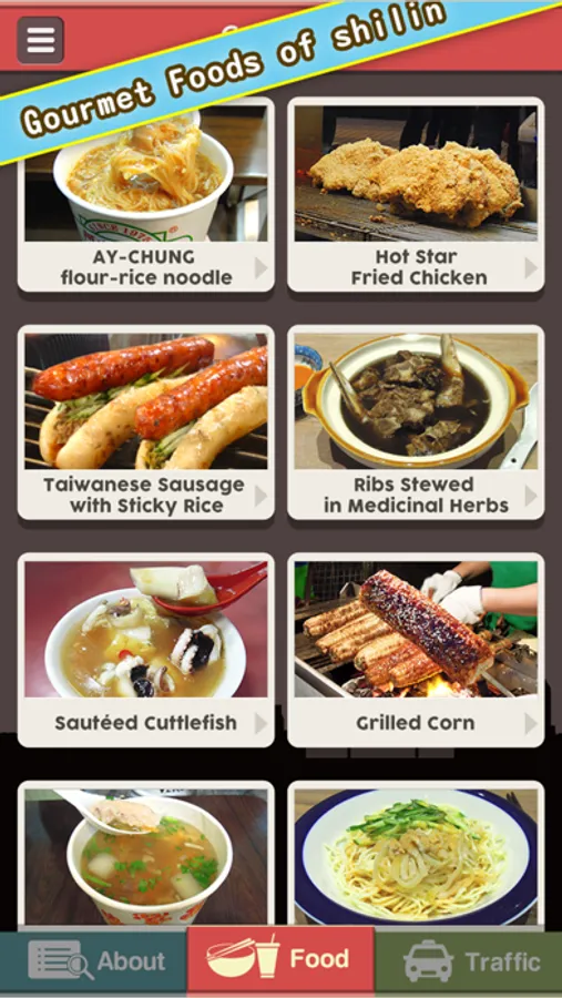 「Taiwan Shilin Night Market Food Guild」 is an excellent App combines food infomation and navigation function which allows you to enjoy Taiwan's gourmet food with ease.