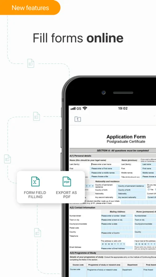 • View and fill online forms to quickly create model documents from ready templates, save them as PDF. You can create form templates in the web version of ONLYOFFICE Docs, or use ready templates from the template library.