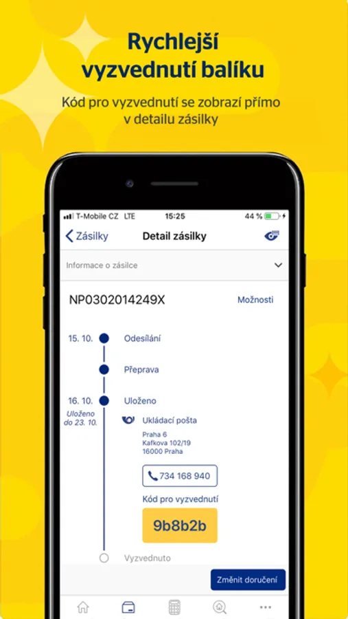 · kód pro vyzvednutí zásilky,