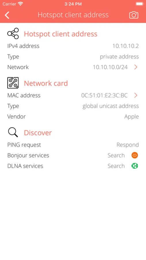 • Analyze currently connected hotspot clients. Show IP and MAC address, PING capability, etc.