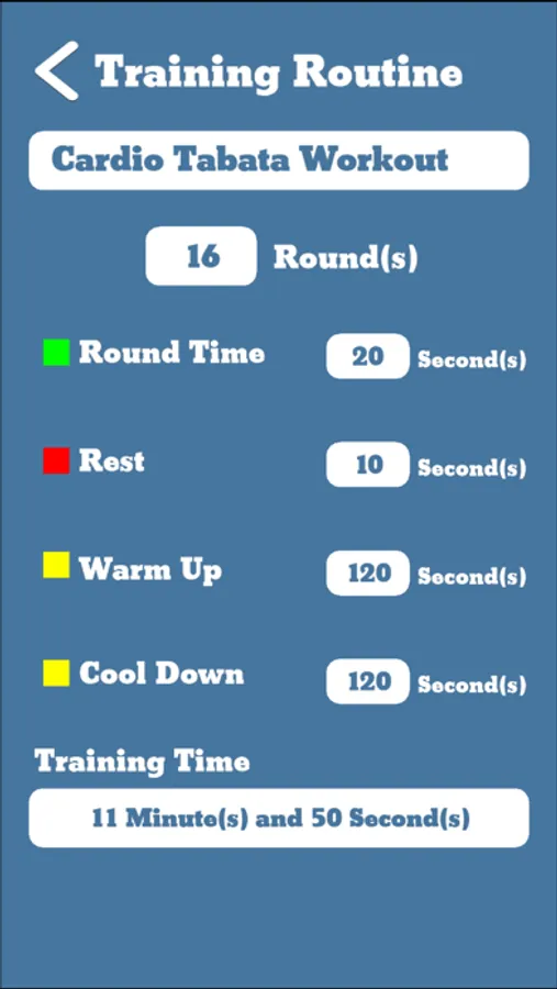 * Color reference for each timer training stage of the HIIT, Tabata or any other training/fitness session. Easy to read time