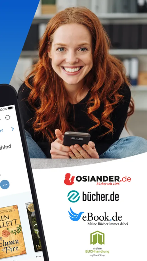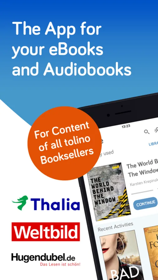 Discover an almost endless selection in the shop of Thalia, Weltbild, Hugendubel, eBook.de, buecher.de, Osiander, Orell Füssli or at the tolino partner bookshops of meineBUCHhandlung. You decide which tolino bookstore you want to buy your eBooks and audiobooks from. The purchased titles automatically appear in the tolino app.