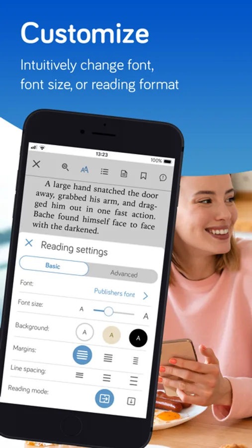 Read EPUB and PDF books and listen to audiobooks easily and flexibly on the go? The tolino app offers you unlimited reading and listening pleasure for your iPhone and iPad at any time. Simply download the free tolino app, download eBook and audiobook and your digital library is available to you at any time, even offline, for reading and listening.